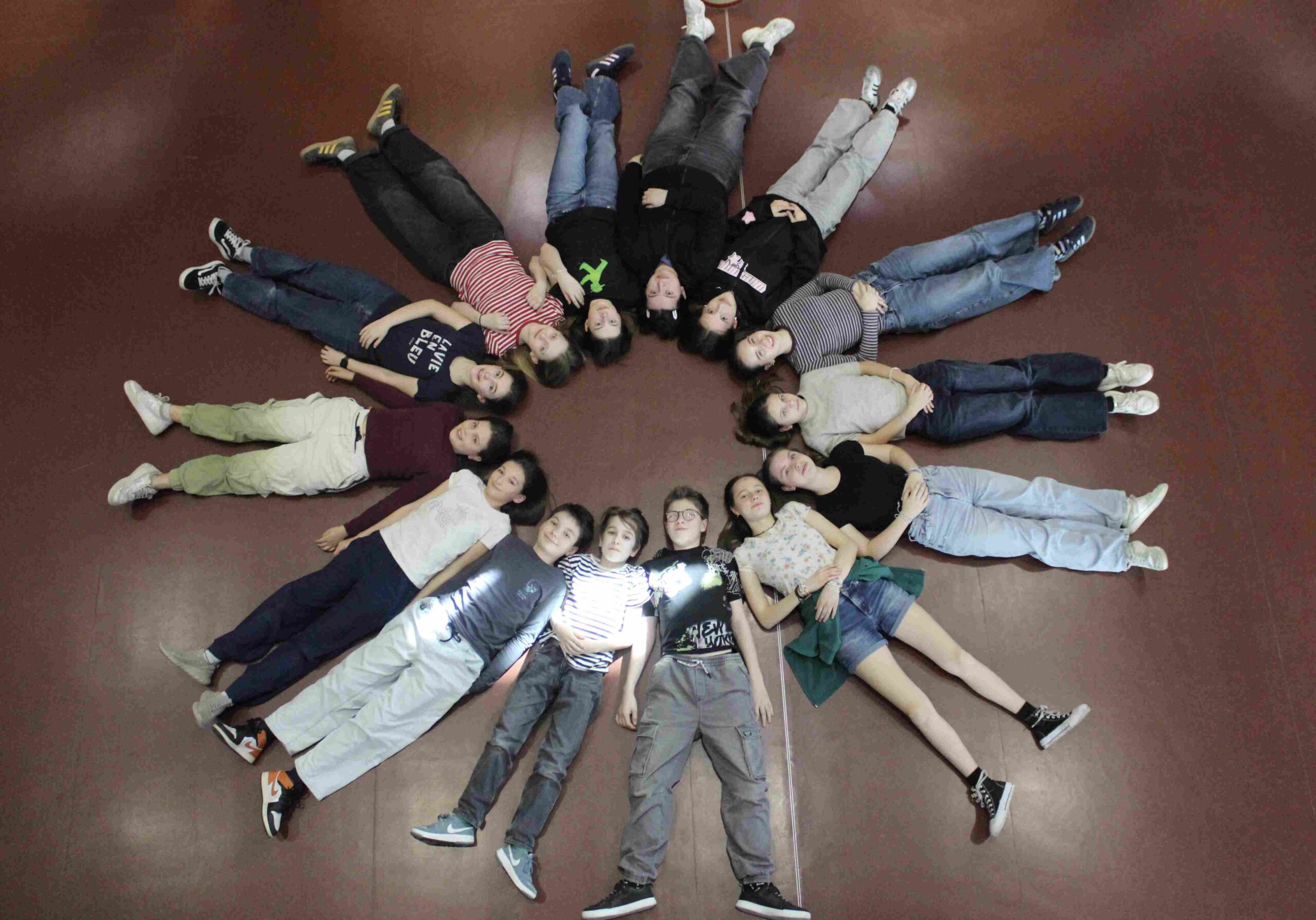 Dreizehn Mädchen, die schon das ganze Schuljahr über gemeinsam Spaß am Entdecken von Theater und Fantasie haben.